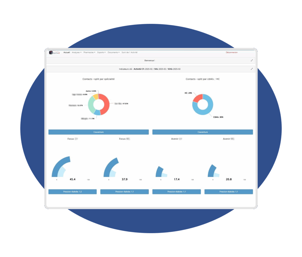 Suivis de cibles, R/O contacts, R/O couverture, croisement ventes/activité.