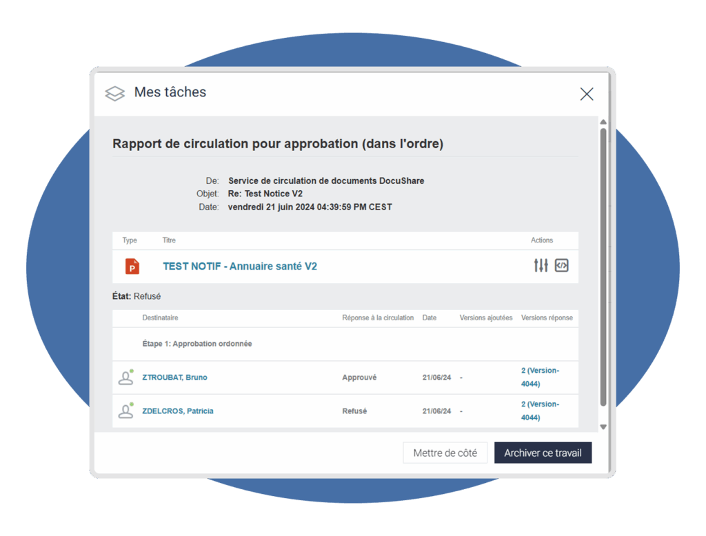 Partage des documents online, visualisation des différentes versions de documents, archivage.